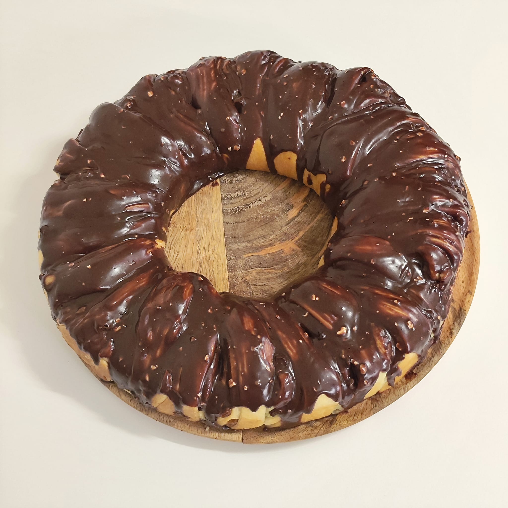Keedukreemikringel rosinatega ja tumeda šokolaadiglasuuriga
