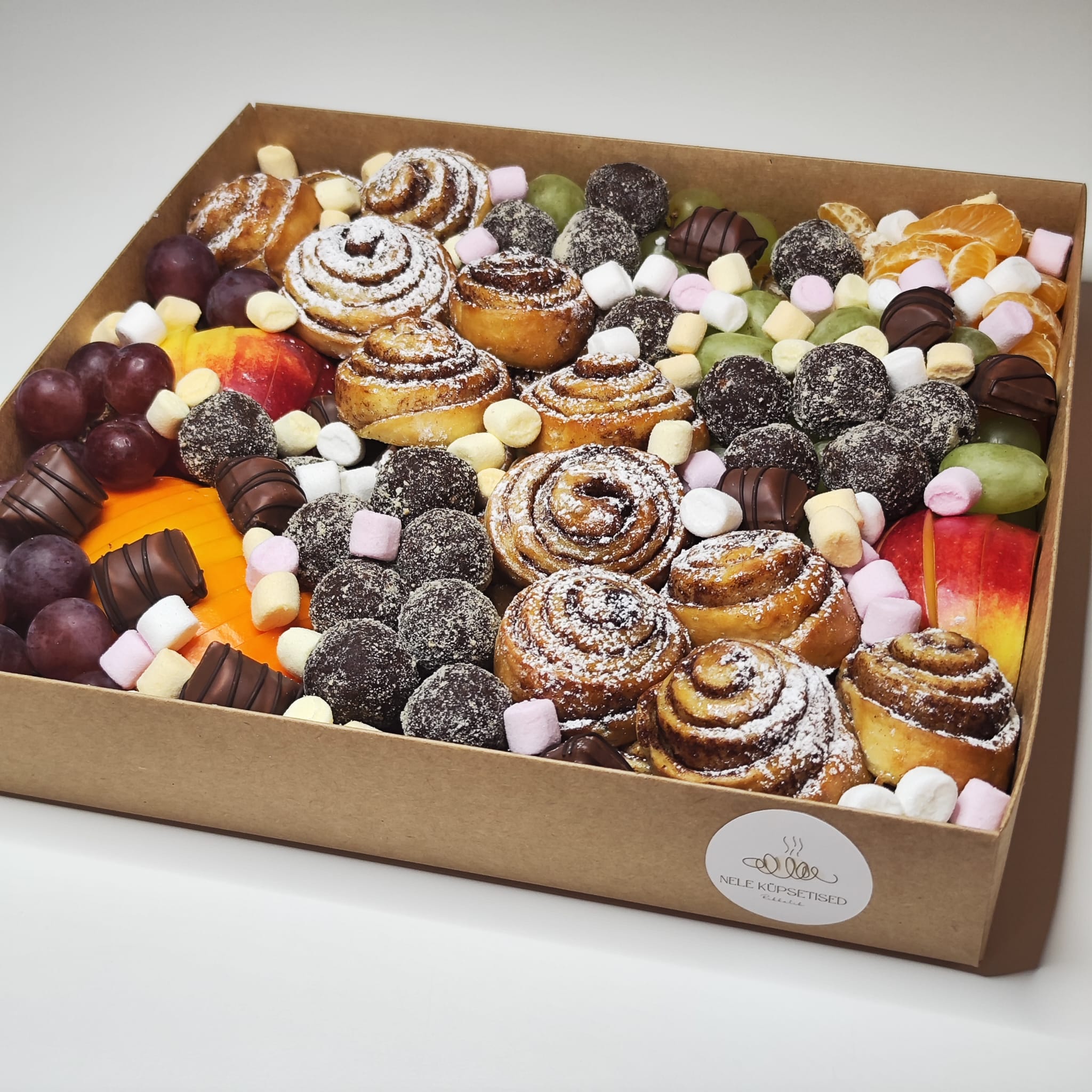 See vaagen on ideaalne valik laste- ja sünnipäevapidudele. Vaagnalt leiab 25 minikaneelikat, 20 moorapalli, värskeid viinamarju ja hooajalisi puuvilju. Lisaks annavad magusale vaagnale särtsu bueno maiused ja minivahukommid.