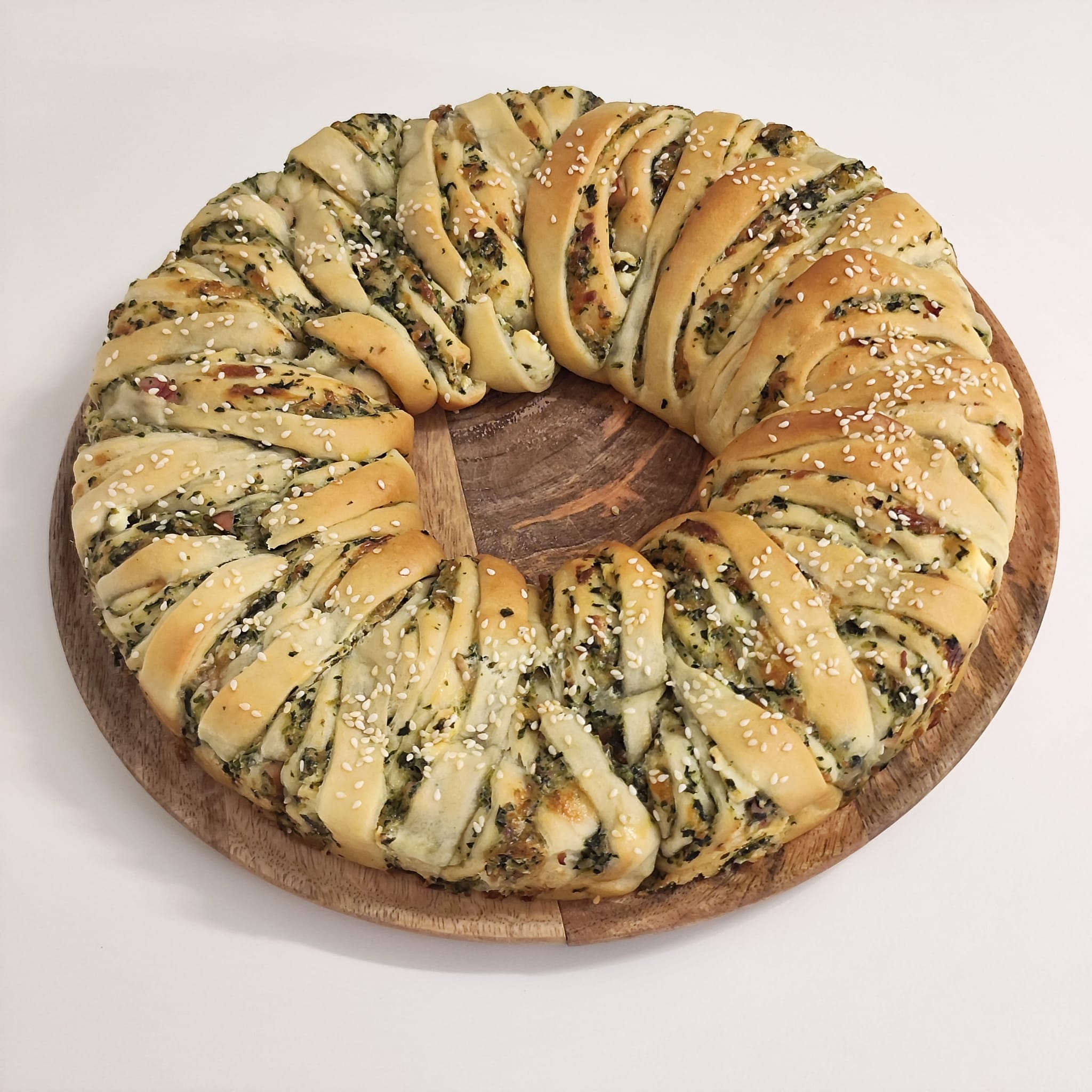 See pole tavaline kringel, vaid maitsev üllatus! Mahedat spinatit ja soolast fitaki juustu täiustavad suitsukana ja kadakajuustu hõrk mekk. See on mahlane suupiste, mis kaob laualt hetkega ja püsib pehme ka järgmisel päeval. Ideaalne igale lauale.